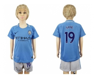 Manchester City #19 Sane Home Kid Soccer Club Jersey