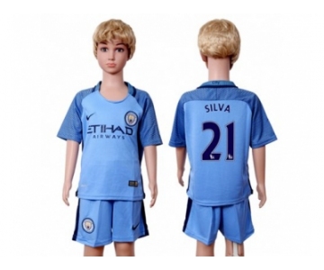 Manchester City #21 Silva Home Kid Soccer Club Jersey1