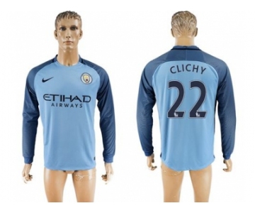 Manchester City #22 Clichy Home Long Sleeves Soccer Club Jersey1