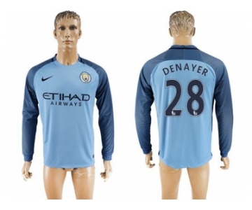 Manchester City #28 Denayer Home Long Sleeves Soccer Club Jersey1