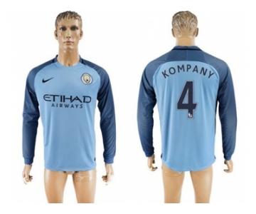 Manchester City #4 Company Home Long Sleeves Soccer Club Jersey1