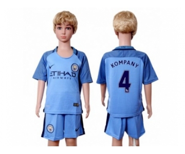 Manchester City #4 Kompany Home Kid Soccer Club Jersey1