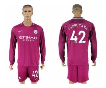 Manchester City #42 Toure Yaya Away Long Sleeves Soccer Club Jersey