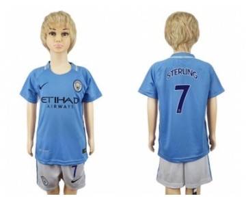 Manchester City #7 Sterling Home Kid Soccer Club Jersey