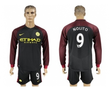 Manchester City #9 Nolito Away Long Sleeves Soccer Club Jersey