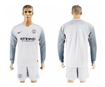 Manchester City Blank White Goalkeeper Long Sleeves Soccer Club Jersey