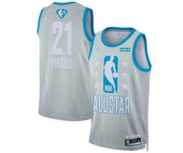 Men 2022 All Star #21 Joel Embiid Blue Eastern Conference Gray Eastern Conference Basketball Jersey