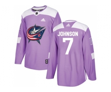 Men Adidas Columbus Blue Jackets #7 Jack Johnson Purple Authentic Fights Cancer Stitched NHL Jersey