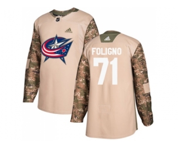 Men Adidas Columbus Blue Jackets #71 Nick Foligno Camo Authentic 2017 Veterans Day Stitched NHL Jersey