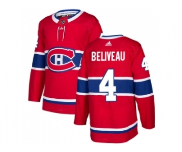 Men Adidas Montreal Canadiens #4 Jean Beliveau Red Home Authentic Stitched NHL Jersey
