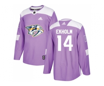 Men Adidas Nashville Predators #14 Mattias Ekholm Purple Authentic Fights Cancer Stitched NHL Jersey