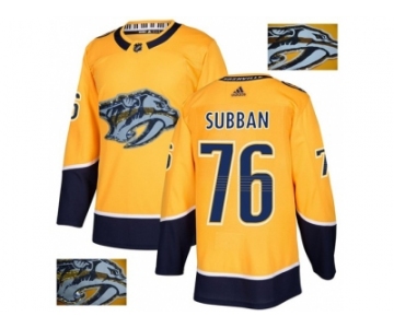 Men Adidas Nashville Predators #76 P.K Subban Yellow Home Authentic Fashion Gold Stitched NHL Jersey