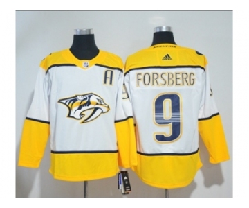 Men Adidas Nashville Predators #9 Filip Forsberg White Road Authentic Stitched NHL Jersey