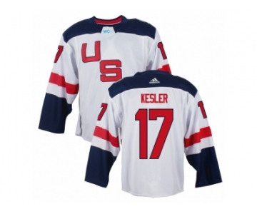 Men Adidas Team USA #17 Ryan Kesler Authentic White Home 2016 World Cup Ice Hockey Jersey