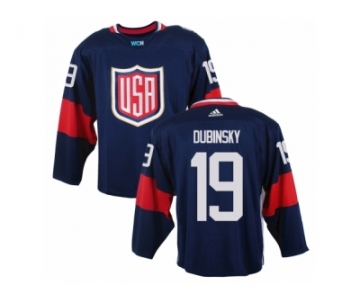Men Adidas Team USA #19 Brandon Dubinsky Navy Blue Away 2016 World Cup Ice Hockey Jersey