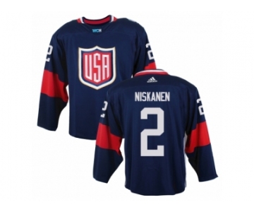 Men Adidas Team USA #2 Matt Niskanen Navy Blue Away 2016 World Cup Ice Hockey Jersey