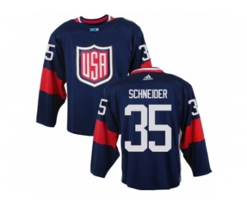 Men Adidas Team USA #35 Cory Schneider Navy Blue 2016 World Cup Ice Hockey Jersey