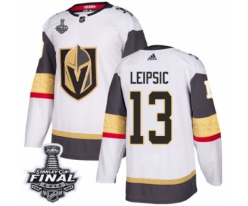 Men Adidas Vegas Golden Knights #13 Brendan Leipsic Authentic White Away 2018 Stanley Cup Final NHL Jersey