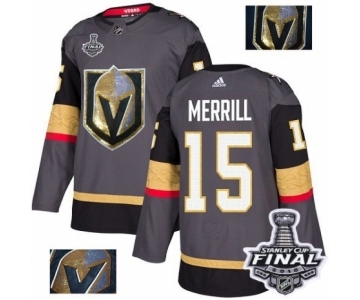 Men Adidas Vegas Golden Knights #15 Jon Merrill Authentic Gray Fashion Gold 2018 Stanley Cup Final NHL Jersey