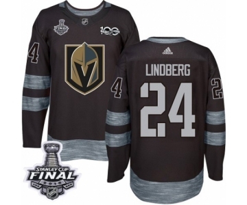 Men Adidas Vegas Golden Knights #24 Oscar Lindberg Authentic Black 1917-2017 100th Anniversary 2018 Stanley Cup Final NHL Jersey
