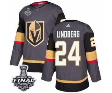 Men Adidas Vegas Golden Knights #24 Oscar Lindberg Authentic Gray Home 2018 Stanley Cup Final NHL Jersey