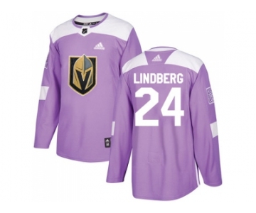 Men Adidas Vegas Golden Knights #24 Oscar Lindberg Purple Authentic Fights Cancer Stitched NHL Jersey