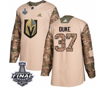 Men Adidas Vegas Golden Knights #37 Reid Duke Authentic Camo Veterans Day Practice 2018 Stanley Cup Final NHL Jersey