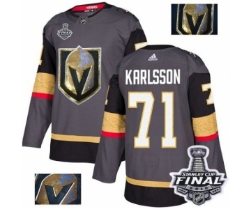 Men Adidas Vegas Golden Knights #71 William Karlsson Authentic Gray Fashion Gold 2018 Stanley Cup Final NHL Jersey
