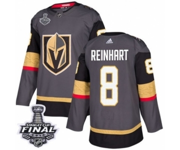 Men Adidas Vegas Golden Knights #8 Griffin Reinhart Authentic Gray Home 2018 Stanley Cup Final NHL Jersey