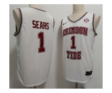 Men Alabama Crimson Tide #1 Mark Sears White Throwback Stitched Basketball NCAA Jersey