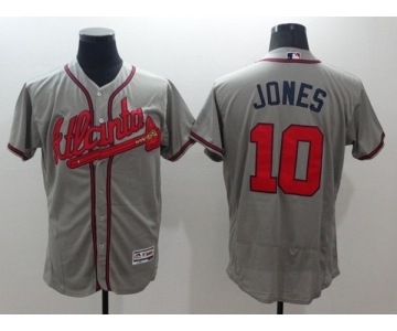 Men Atlanta Braves #10 Chipper Jones Majestic Gray Flexbase Authentic Collection Player Jersey