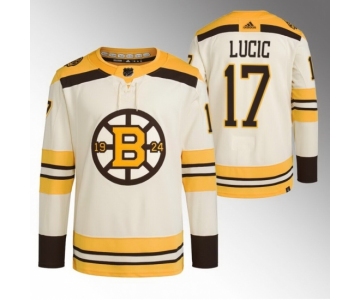 Men Boston Bruins #17 Milan Lucic Cream 100th Anniversary StitchedStitched Jersey