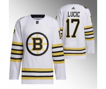 Men Boston Bruins #17 Milan Lucic White 100th Anniversary Stitched Jersey
