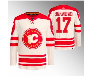 Men Calgary Flames #17 Yegor Sharangovich 2023 Cream Heritage Classic Primegreen Stitched Jersey