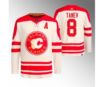 Men Calgary Flames #8 Chris Tanev 2023 Cream Heritage Classic Primegreen Stitched Jersey