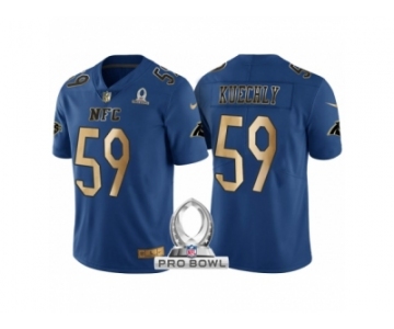 Men Carolina Panthers #59 Luke Kuechly NFC 2017 Pro Bowl Blue Gold Limited Jersey