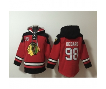 Men Chicago Blackhawks 98 Connor Bedard Red Lace Up Pullover Hoodie