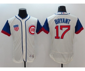 Men Chicago Cubs #17 Kris Bryant Majestic Cream Blue Flexbase Authentic Collection Player Jersey
