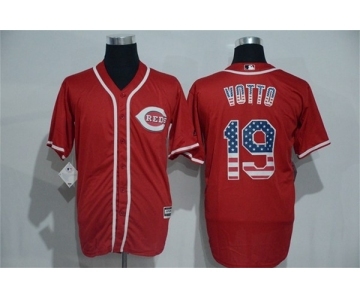 Men Cincinnati Reds #19 Joey Votto Red USA Flag Fashion MLB Jersey