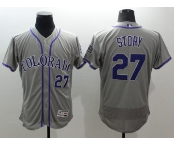 Men Colorado Rockies #27 Story Majestic Gray Authentic Collection Flexbase Jersey
