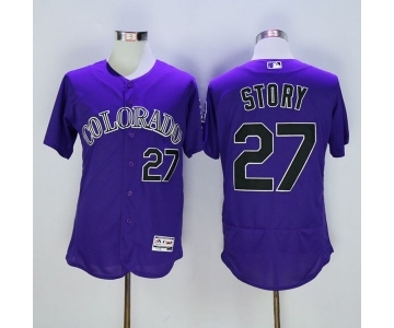 Men Colorado Rockies #27 Story Majestic Purple Flexbase Authentic Collection Player Jersey