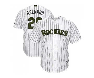Men Colorado Rockies #28 Nolan Arenado White Strip New Cool Base 2018 Memorial Day Stitched MLB Jersey
