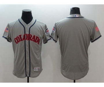 Men Colorado Rockies Majestic Blank Gray 2016 Independence Day Stars & Stripes Flex Base Team Jersey