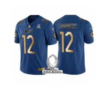 Men Green Bay Packers #12 Aaron Rodgers NFC 2017 Pro Bowl Blue Gold Limited Jersey