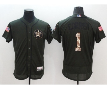 Men Houston Astros #1 Carlos Correa Majestic Green Salute to Service Flexbase Authentic Collection Jersey