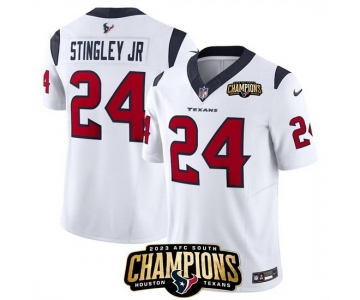 Men Houston Texans #24 Derek Stingley Jr White 2023 F U S E AFC South Champions Patch Vapor Untouchable Limited Stitched Football Jersey
