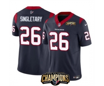Your Position: Home>NIKE NFL Jerseys>Nike Houston Texans>Limited Jerseys>Men Houston Texans #26 Devin Singletary Navy 2023 F U S E AFC South Champions Patch Vapor Untouchable Limited Stitched Football Jersey