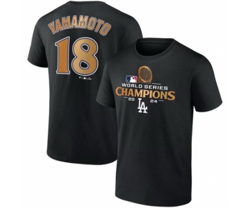 Men Los Angeles Dodgers 18 Yoshinobu Yamamoto Black 2024 World Series Champions Name 26 Number T Shirt