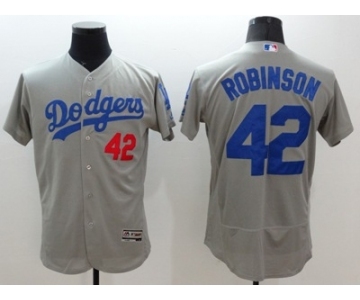 Men Los Angeles Dodgers #42 Jackie Robinson Majestic Gray Flexbase Authentic Collection Player Jersey