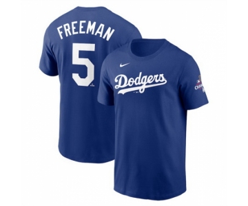Your Position: Home>NIKE MLB Jerseys>2024 World Series Champions>T Shirt>Men Los Angeles Dodgers 5 Freddie Freeman Royal 2024 World Series Champions Name 26 Number T Shirt